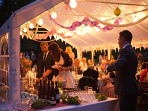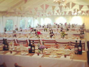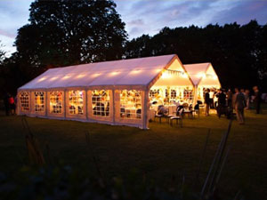 Our marquees are available in 3m, 4m and 6m widths and working in 2m sections can be made as long as necessary to meet your marquee hire requirements. We provide window walls in an arched Georgian style with roll down blinds for the evening. The inside of a marquee is a blank canvas and can be tailored to your requirements whether a traditional wedding, family party or for use as a display stall for festivals and fetes as well as product launch parties.